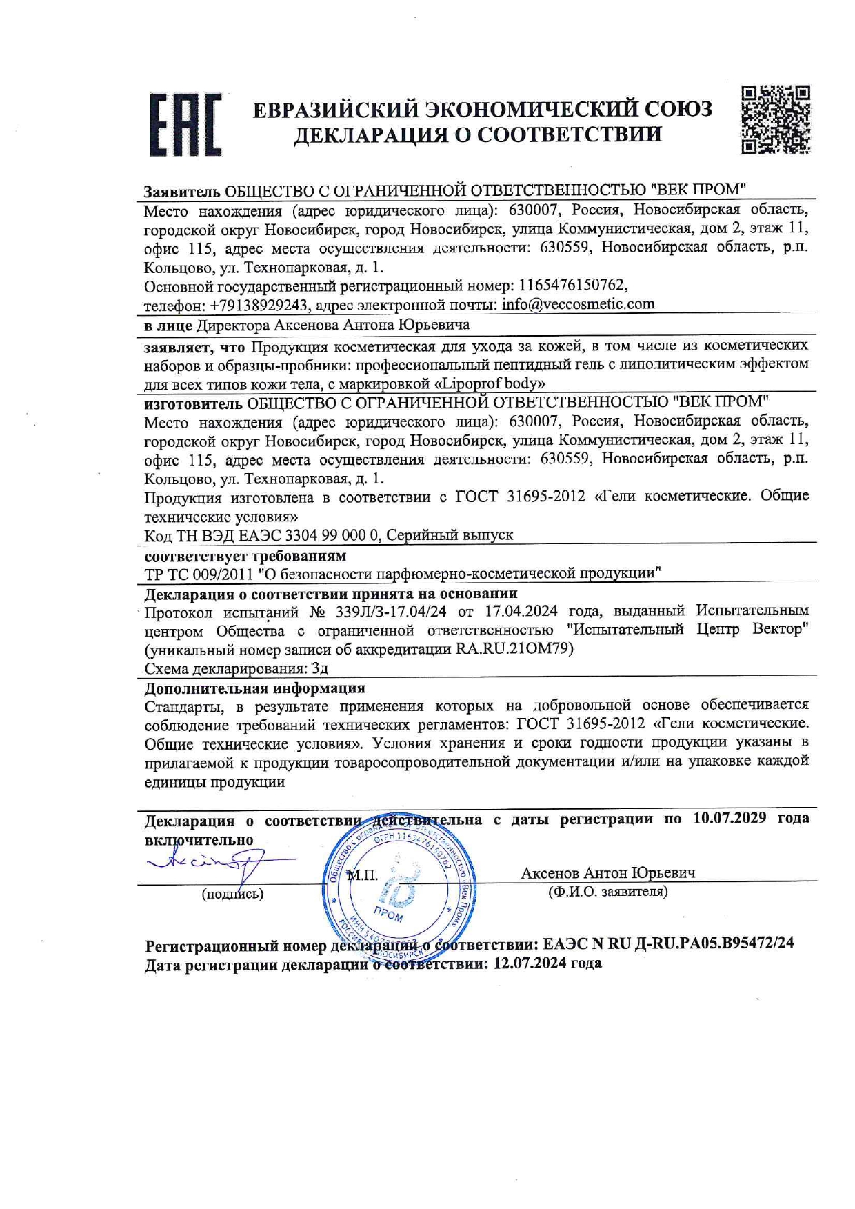 | Производитель | V.E.C. – Vital Essential Cosmetics |